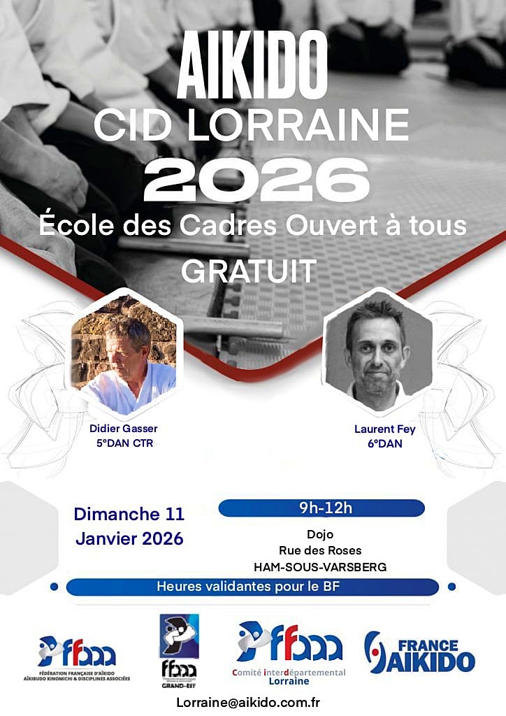 Ce dimanche 11 janvier 2026, nous avons accueilli un stage d'aïkido co-animé par Didier GASSER et Laurent FEY. Le thème du jour "la mobilité" a fait bouger une vingtaine de personnes venues notamment de Metz, Saarbrücken, Ham sous Varsberg. Nous avons pu prolonger ce moment de convivialité au restaurant avant de repartir braver le froid et le verglas !